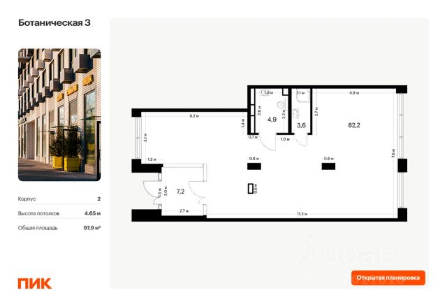 Продаётся нежилое помещение свободного назначения в новом жилом районе Ботаническая 3 от ПИК. Открытая планировка, витринное остекление, удобный вход на уровне земли. Помещение номер 31. Продажа напрямую от застройщика.