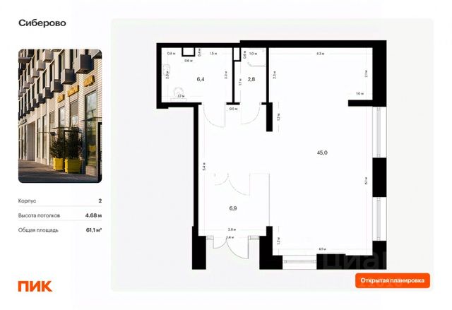 Продаётся нежилое помещение свободного назначения в новом жилом районе Сиберово от ПИК. Открытая планировка, витринное остекление, удобный вход на уровне земли. Помещение номер 18. Продажа напрямую от застройщика.