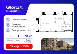 Продается помещение - 67,94 кв.м. в проекте GloraX Экосити.