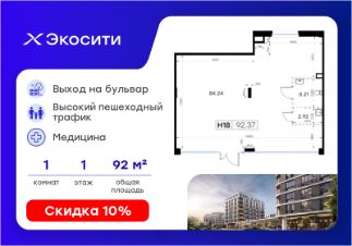Продается помещение -92,37 кв.м. в проекте Экосити.