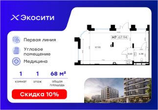 Продается помещение - 67,94 кв.м. в проекте Экосити.