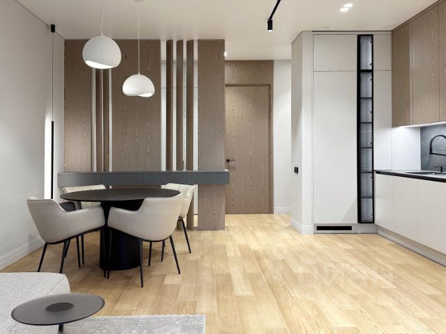 Первый этаж : большая кухня-гостиная 50кв. м, прихожая и санузел гостевой с душевой кабиной. Второй этаж две просторные спальни, небольшая гардеробная и большой хозяйский санузел с ванной. На первом и втором этажах кондиционеры, в ванной водонагреватель. На кухне , санузле и балконах тёплые полы !