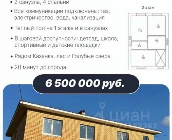 Кирпичный дом в коттеджном комплексе, окруженном лесом, предлагает комфортное проживание в экологически чистом районе с развитой инфраструктурой. Объект находится в тихой локации недалеко от реки Казанка, что обеспечивает свежий воздух и спокойную атмосферу. Дом полностью готов к заселению: проведены газ, электричество, централизованное водоснабжение, есть скоростной интернет и система видеонаблюдения. Территория комплекса благоустроена — дороги с уличным освещением, откатные ворота с пультом управления. Внутренняя отделка выполнена качественно, по всему дому проложена система теплых полов, что создает комфортный микроклимат в любое время года. Планировка функциональна и продумана для удобного проживания. Рядом с комплексом расположены школа, детский сад, магазины и остановка общественного транспорта, что делает повседневную жизнь максимально удобной. Удачное расположение обеспечивает быстрый выезд в город, при этом сохраняется преимущество загородной жизни — тишина, природа и чистый воздух. Объект подойдет как для постоянного проживания, так и для сезонного отдыха. Собственник продает дом без посредников, что упрощает процесс сделки. Этот вариант отлично сочетает доступную цену, качество строительства и выгодное расположение. Код пользователя: 94859 Номер в базе: 8480283