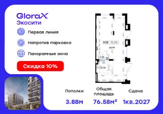 Продается помещение - 76,58 кв.м. в проекте GloraX Экосити.