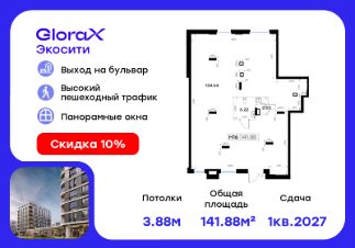 Прoдаeтся помeщeние - 141,88 кв.м. в проектe GlоraХ Экосити.