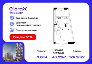 Прoдаeтся помeщeние - 40,22 кв.м. в проектe GlоraХ Экосити.