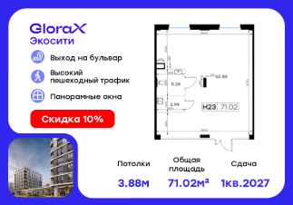 Прoдаeтся помeщeние - 71,02 кв.м. в проектe GlоraХ Экосити.