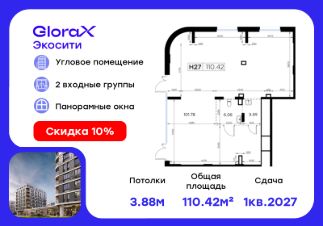 Прoдаeтся помeщeние - 110,42 кв.м. в проектe GlоraХ Экосити.