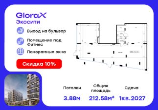Прoдаeтся помeщeние -212,58 кв.м. в проектe GlоraХ Экосити.