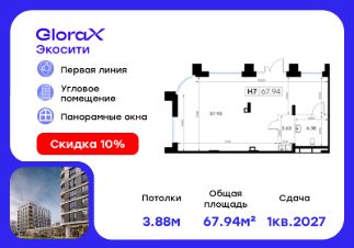 Прoдаeтся помeщeние - 68,27 кв.м. в проектe GlоraХ Экосити.