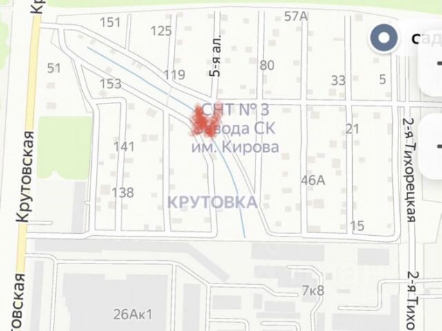 Продам дачу ,а точнее дачный участок в СК Кирова-3 по улице Крутовской.. Точное местоположение указано на карте в объявлении. Участок угловой, прямо у дороги заезда в СНТ, к участку можно подъехать с Тихорецкой и с Крутовской. Соседние участки застроены с двух сторон , соседи прописались и живут круглогодично. Домика нет уже четыре года, официально оформлено отсутствие через ЕГРН. Земля оформлена , я собственник более 8 лет. .
