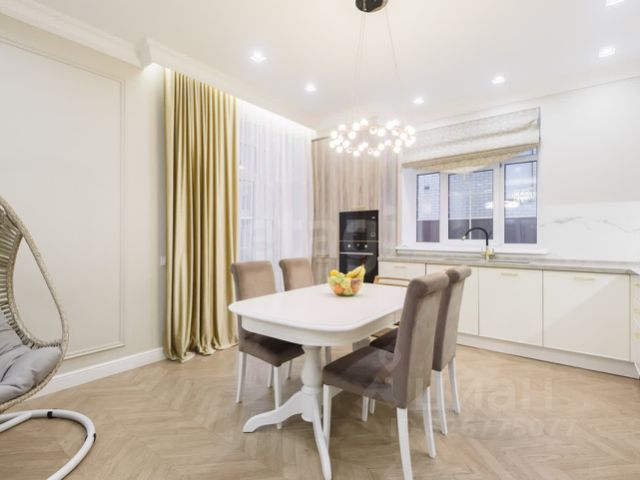 На первом этаже два входа, один с выходом на террасу. В прихожей есть шкаф-купе из массива дуба. Лестница из массива дуба на все 4 этажа. Межкомнатные двери во всем доме сделаны из массива дуба в тон лестнице. Пол в гостиной из паркетной доски из красного дерева, в кухне и прихожей из качественного керамогранита производства Кеrаmа Маrаzzi. На кухне роскошный кухонный гарнитур из массива дуба с гранитной столешницей цвета блюперл (голубой жемчуг) с сервантом и встроенным холодильником, итальянский кухонный раздвижной стол на 8 персон и 2 итальянских стула из дерева в стиле кухонного гарнитура.