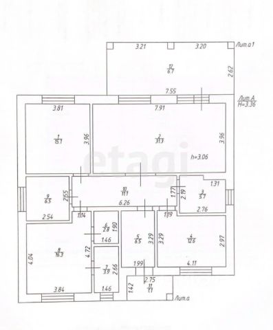 Высота потолков 3, 1-5 м.