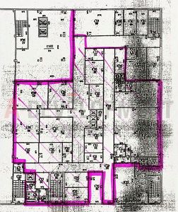 Помещения на 2 этаже ТЦ "Бахетле" с отдельным входом с задней части здания, само помещение коридорно-кабинетной структуры: многочисленные комнаты-склады со стеллажами площадью от 10 до 50 кв.м., несколько санузлов и душевых комнат, офисные и подсобные помещения.