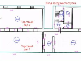 На планировке для примера наглядно показано как зонировали помещение предыдущие арендаторы под торговлю: торговые залы, склады.