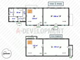 Высота потолков: 4.9 м (1 этаж), 3.15 м (подвал)