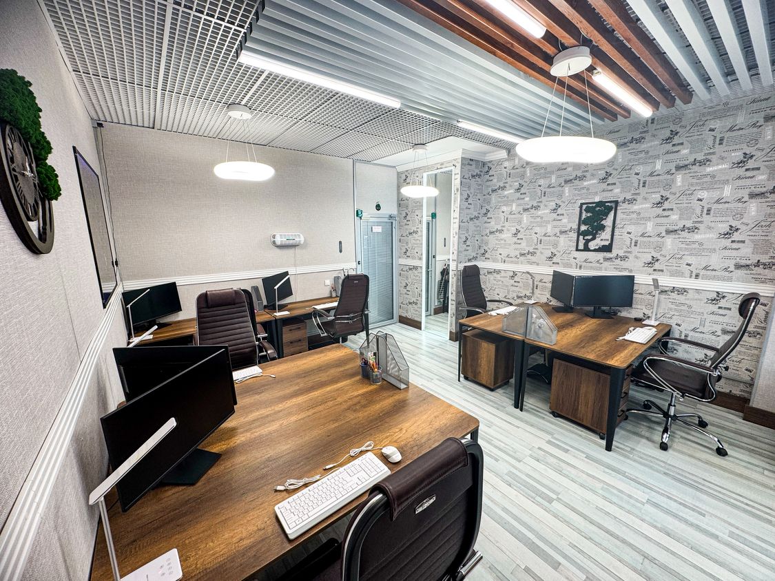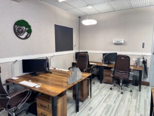 8 оборудованных рабочих мест удобные эргономичные кресла, стильные рабочие столы.
