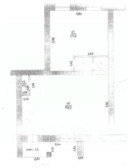 34,9 кв.м на полу линолеум, высота потолка 2,4 м;