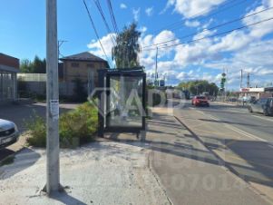 Высокий пешеходный и автомобильный трафик, рядом остановка общественного транспорта и пешеходный переход.