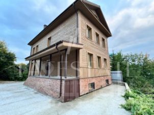 Дом капитальный из кирпича, перекрытия плиты, фасад дерево.