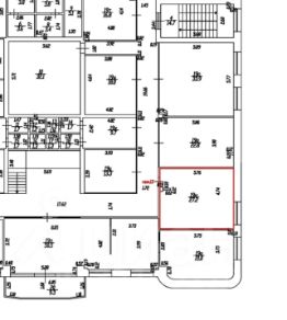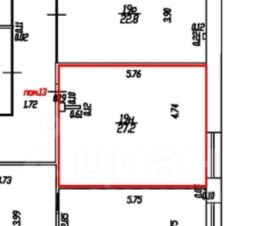 Помещение правильной ,квадратной формы площадью 27,2 квадратных метров.