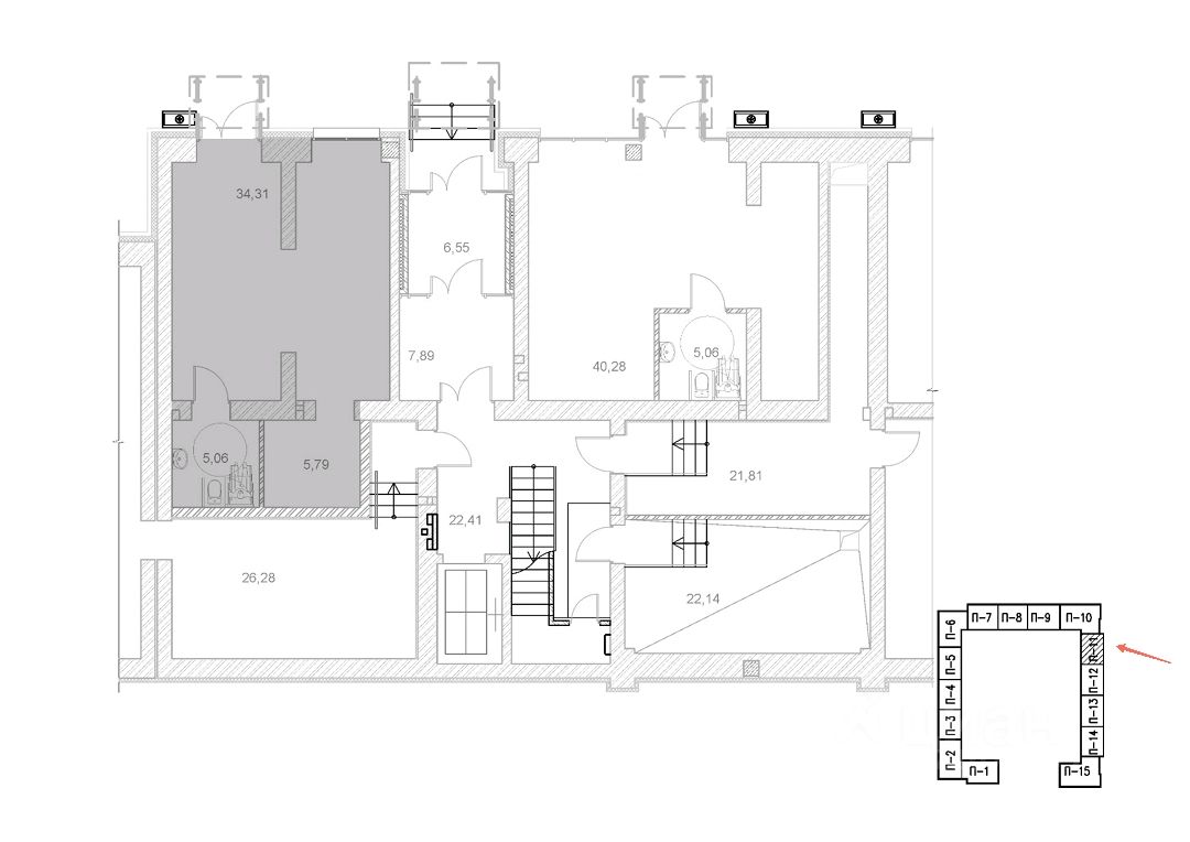 Состоит из 2 комнат и санузла, мокрые точки, без ремонта