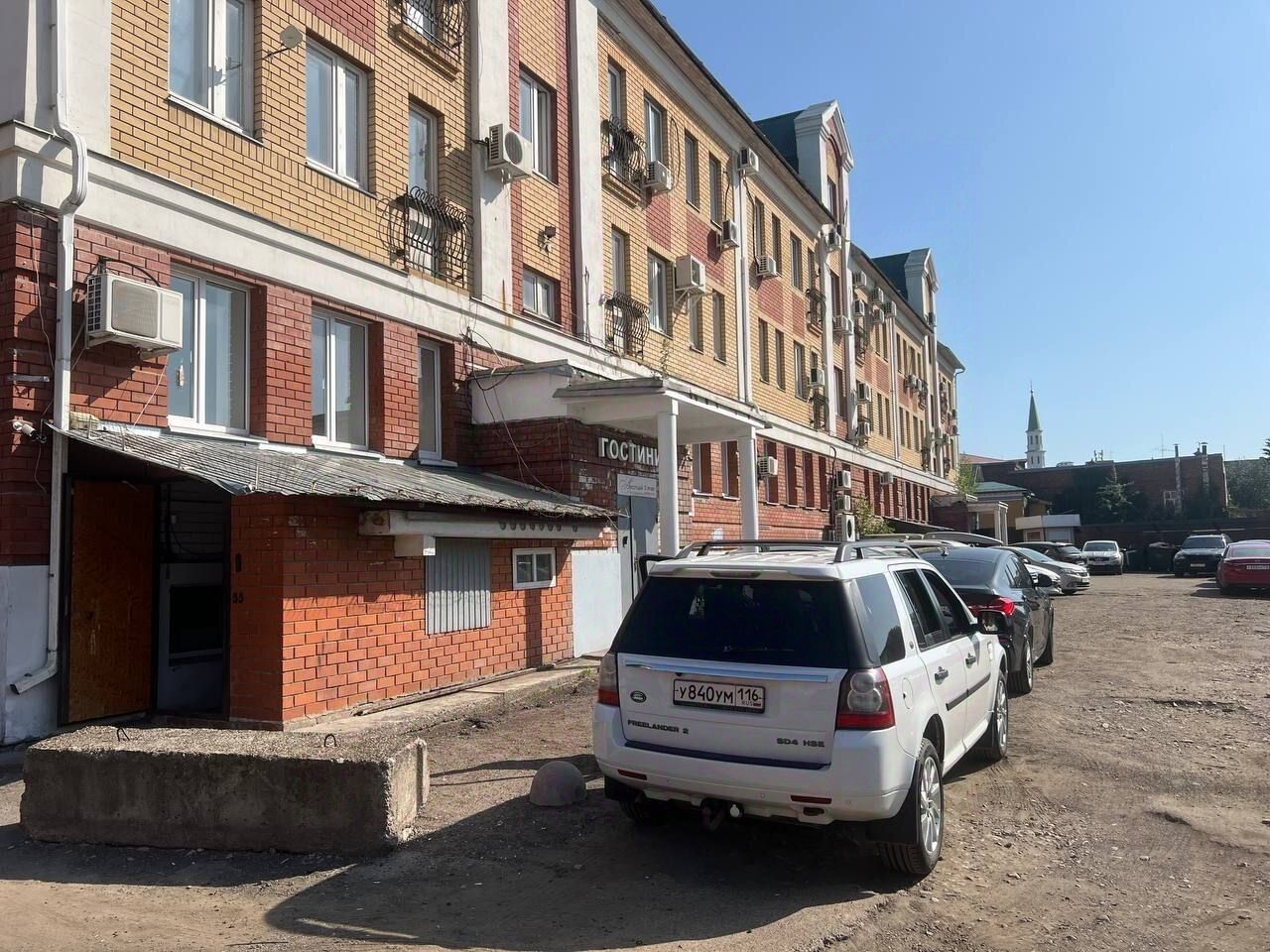 Вход в здание через центральную входную группу, на этаже — общие зоны с удобствами.