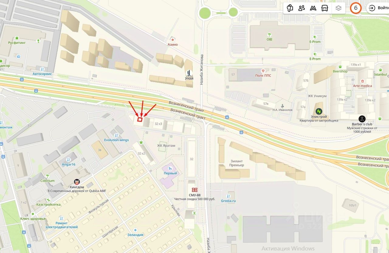 2-а больших окна в сторону Вознесенского тракта