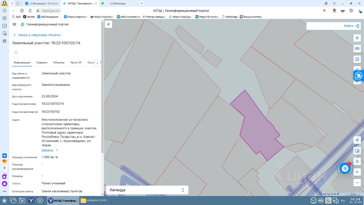 Земельный участок в аренду из земель населенных пунктов, разрешенное использование: для ведения личного подсобного хозяйства, общая площадь 1000 кв.м, кадастровый номер 16:22:100102:14, расположенный по адресу: Республика Татарстан, Камско-Устьинский муниципальный район, с. Красновидово, ул. Новая. Срок аренды: 20 лет. Начальная цена предмета аукциона (размер ежегодной арендной платы): 34449,00 (Тридцать четыре тысячи четыреста сорок девять) рублей.