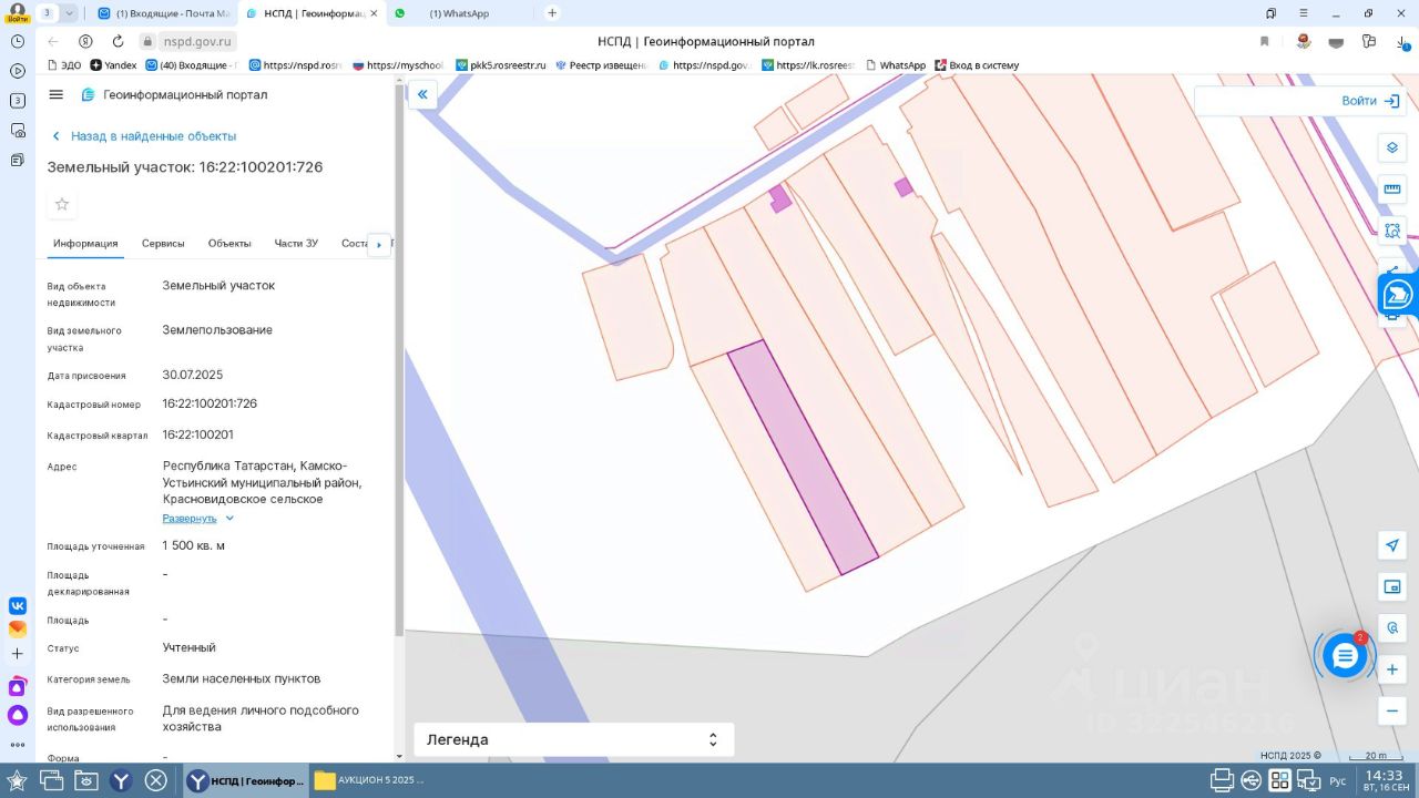 Земельный участок в аренду из земель населенных пунктов, разрешенное использование: для ведения личного подсобного хозяйства, общая площадь 1500 кв.м, кадастровый номер 16:22:100201:726, расположенный по адресу: Республика Татарстан, Камско-Устьинский муниципальный район, Красновидовское сельское поселение, с.Антоновка. Срок аренды: 20 лет. Начальная цена предмета аукциона (размер ежегодной арендной платы): 31242,45 рубля (Тридцать одна тысяча двести сорок два рубля 45 копеек).