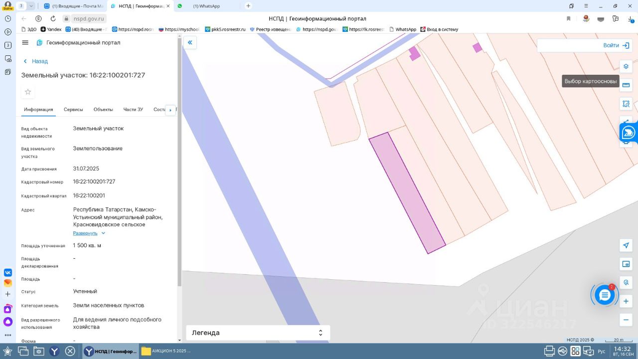 Земельный участок в аренду из земель населенных пунктов, разрешенное использование: для ведения личного подсобного хозяйства, общая площадь 1500 кв.м, кадастровый номер 16:22:100201:727, расположенный по адресу: Республика Татарстан, Камско-Устьинский муниципальный район, Красновидовское сельское поселение, с.Антоновка. Срок аренды: 20 лет. Начальная цена предмета аукциона (размер ежегодной арендной платы): 31237,11 рублей (Тридцать одна тысяча двести тридцать семь рублей 11 копеек).