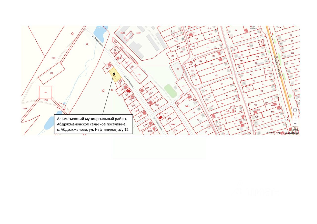 В аренду сроком на 20 лет земельный участок из земель категории земли населенных пунктов площадью 1271 кв.м для индивидуального жилищного строительства с кадастровым номером 16:07:090001:3050, местоположение земельного участка: РТ, Альметьевский муниципальный район, Абдрахмановское сельское поселение, с. Абдрахманово, ул. Нефтяников, з/у 12. По земельному участку проходит сооружение газохимического комплекса (Газоснабжение строящегося микрорайона в н.п. Абдрахманово Альметьеского района) с кадастровым номером 16:07:000000:7868. Земельный участок попадает в санитарно-защитные зоны производственных и иных объектов, в санитарные разрывы трубопровода.