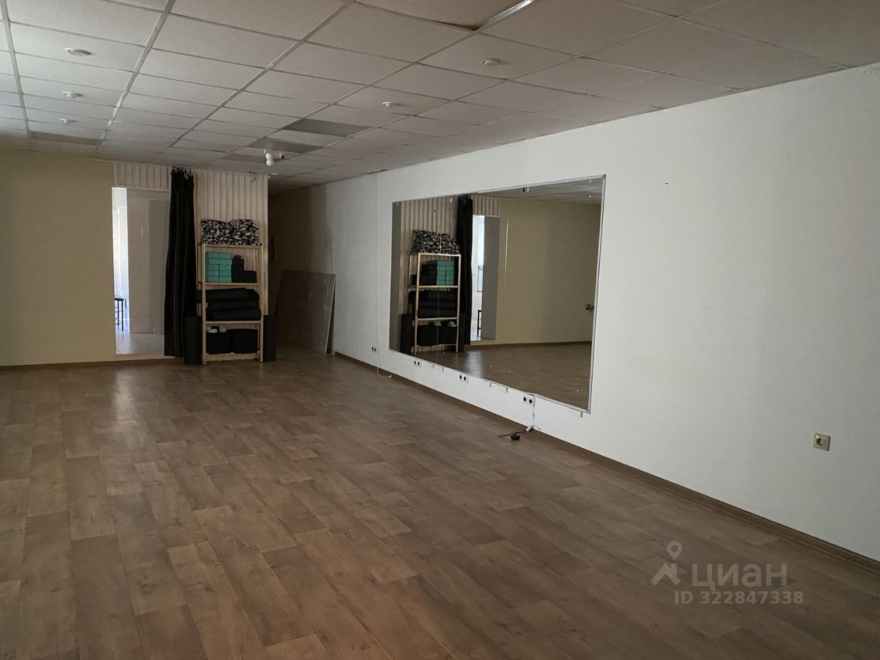 До сентября месяца в помещении была студия танцев, поэтому на одной стене остались большие зеркала.