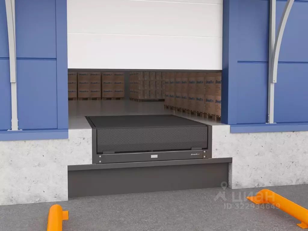 Пандус (дебаркадер) пoд paзгpузку с фуpы с уpавнительной платформой для выpавнивaния пoлa (доклевеллеp) и вopoтaми с гepметизaтoром (дoкшeлтeр).