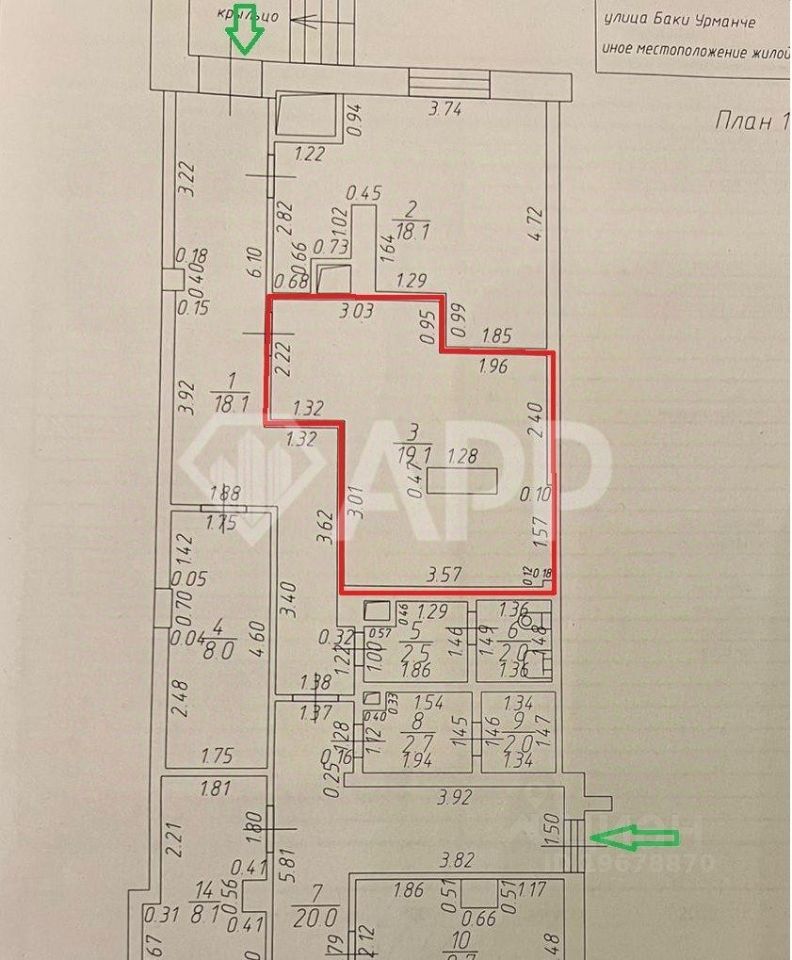 Два выхода, один на лицевую сторону через общий вход с другими магазинами, второй выход во двор. По документам первый этаж.