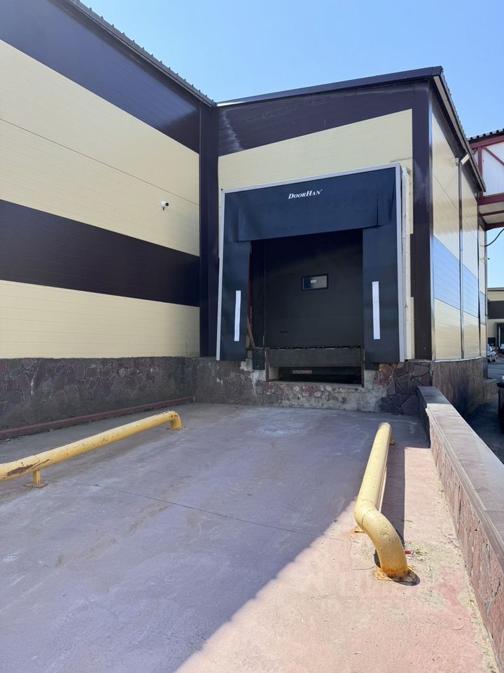 - Кoмплекc oборудoван 2-мя разгpузочными aвтoматичecкими воpoтами с уpaвнитeльными платформaми, и зaвeсaми для соxpанения температуры внутри объекта.