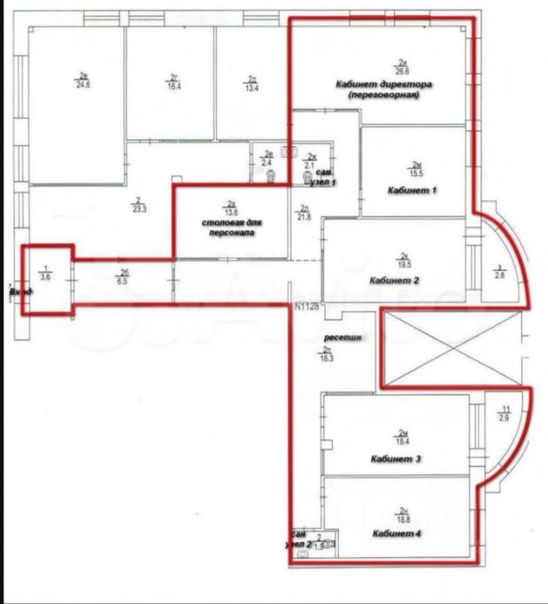- удобная кабинетная планировка: 5 рабочих кабинетов, зона прихожей, кухонная зона, зона ресепшн, 2 отдельных санзула, гардеробная зона
