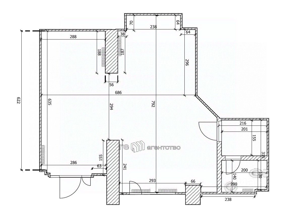 Собственный санузел, кухонная зона, возможность монтажа душевой кабины или дополнительного санузла.