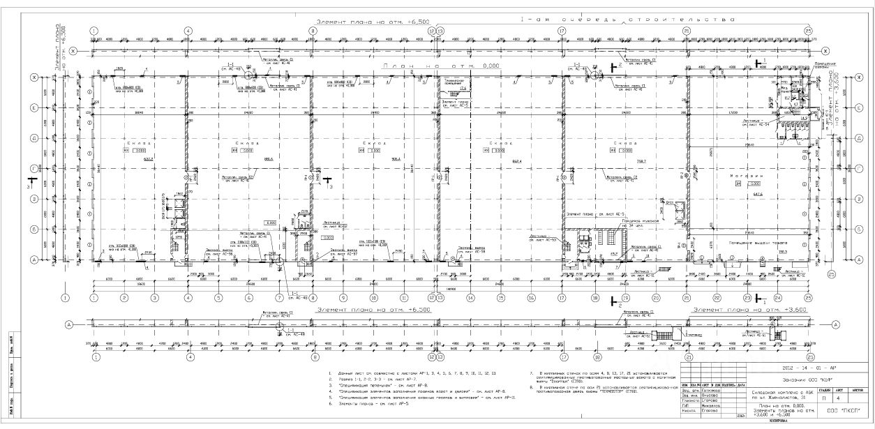 По длине здание поделено противопожарными перегородками (из кирпича) на 6 блоков, (24х36 м.), в перегородках установлены противопожарные ворота