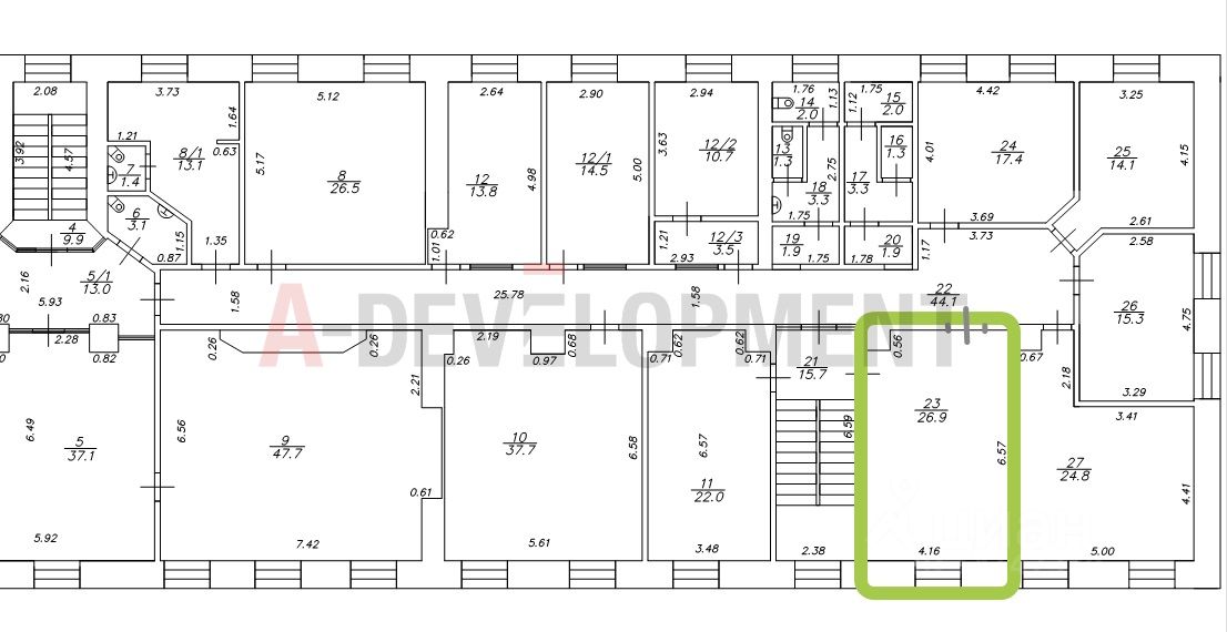 Сдается офис площадью 27 кв.м. на 4 этаже по адресу ул.Ш. Марджани, д.24.