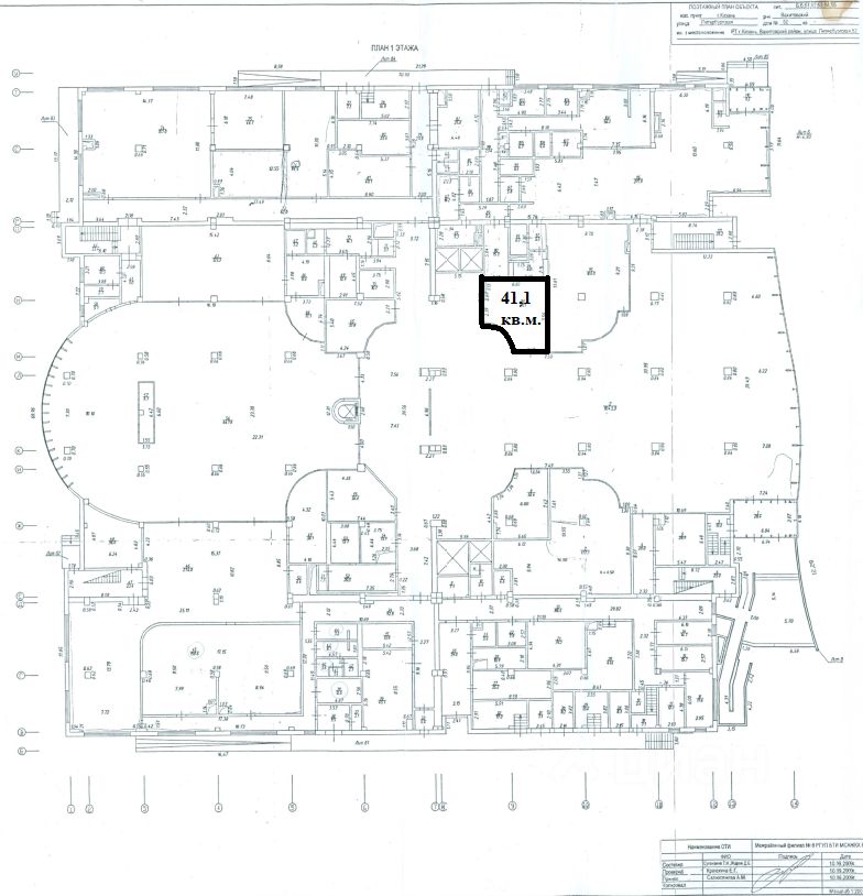 1 этаж 5-этажного здания (тех. помещение 91). Год постройки 2009 г., состояние хорошее; наружные стены (материал) алюкабонд, стекло, керамогранит, кирпич; перегородки (материал) керамический кирпич, гипсокартон; пол монолитные перекрытия; отделка потолков подвесной потолок, гипсокартон; вид отопления центральное; система вентиляции и кондиционирования центральная; системы электро-, тепло-, водоснабжения и канализации имеются