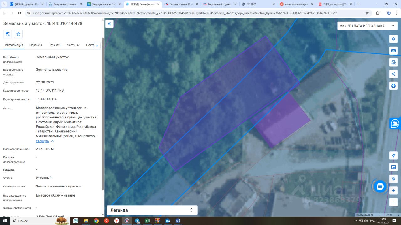 Земельный участок с кадастровым номером 16:44:010114:478, расположенный по адресу: Российская Федерация, Республика Татарстан, Азнакаевский муниципальный район, г Азнакаево, площадью 2150 (Две тысячи сто пятьдесят) кв.м., из категории земель населенных пунктов, с разрешенным использованием "Бытовое обслуживание"