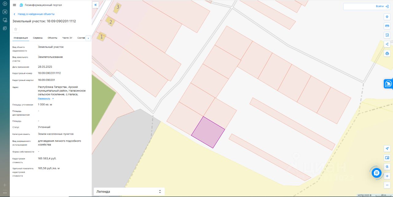 Земельный участок, категория земель: земли населенных пунктов, разрешенное использование: для ведения личного подсобного хозяйства, общая площадь 1 000 кв.м, кадастровый номер 16:09:090201:1112, расположенный по адресу: Республика Татарстан, Арский муниципальный район, Наласинское сельское поселение, с.Наласа, ул.М.Вахитова, д.71А.
