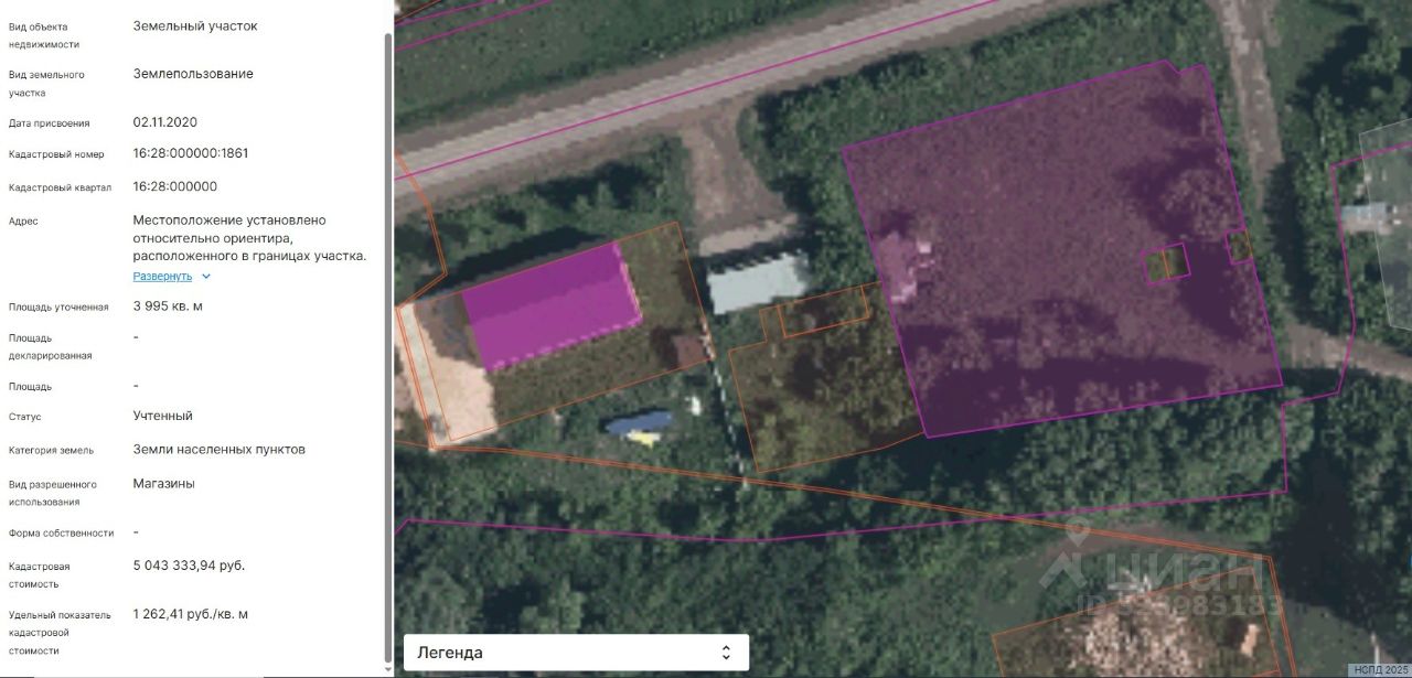 земельный участок из земель населенных пунктов площадью 3995 кв.м. с кадастровым номером 16:28:000000:1861, вид разрешенного использования "Магазины", расположенный по адресу: РТ, Мензелинский муниципальный район, г.Мензелинск, ул. Изыскателей, з/у 42А