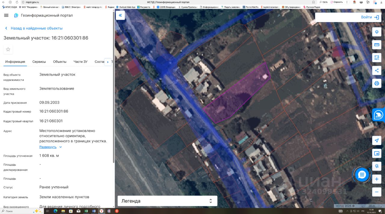Земельный участок с кадастровым номером 16:21:060301:86 площадь 1608 по адресу Российская Федерация, Республика Татарстан, Кайбицкий муниципальный район, д. Имянле-Буртас, ул. Тукая, 12