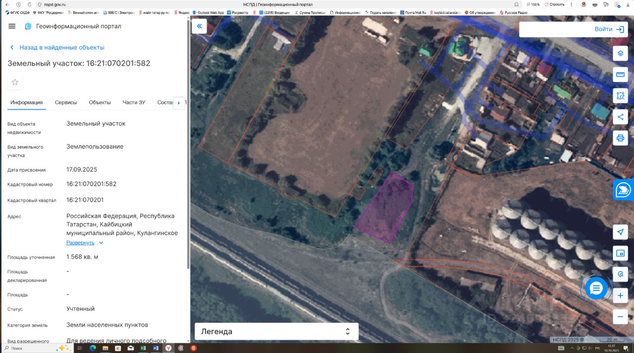 Земельный участок с кадастровым номером 16:21:070201:582 площадь 1568 по адресу Российская Федерация, Республика Татарстан, Кайбицкий муниципальный район, Кулангинское сельское поселение, пос. ж/д станции Куланга, ул. Светлая