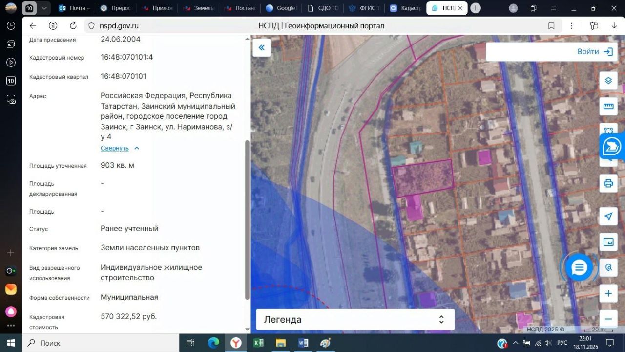 Земельный участок, категория земель: земли населенных пунктов, разрешенное использование: индивидуальное жилищное строительство, общая площадь 903 кв.м., кадастровый номер 16:48:070101:4, расположенный по адресу: Российская Федерация, Республика Татарстан, Заинский муниципальный район, городское поселение город Заинск, г. Заинск, ул. Нариманова, з/у 4