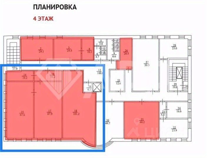 Предлагаем офис 258,1кв.м. на 4 этаже офисного центра.