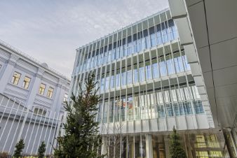 Большая благоустроенная территория для отдыха, встреч, работы на свежем воздухе. Внутренний двор с ландшафтным дизайном, фонтан-водопад для релакса, эксплуатируемая зеленая кровля с видами на исторический центр города (проект получил бронзовый диплом Российской национальной премии по ландшафтной архитектуре).