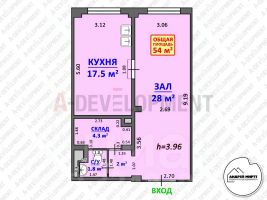 1 линия внутри жилого массива, отдельный вход с активным пешеходным трафиком. Основные характеристики Площадь - 54 м
